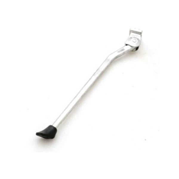 #Simson standaard basic zilver. Verstelbaar aluminium standaard met een normale brede plaat bevestiging (30mm). Deze standaard heeft een kunststof voet voor optimale stevigheid. Geschikt voor een wielmaat van 28 inch. Voor ieder gewenste wielmaat in te korten d.m.v. gegraveerde maatindex op de achterzijde. Zeer geschikt voor stadsfietsen en hybride fietsen.