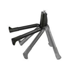 Alu, extreem stabiel, met vlak neigingshoek voor meer stabiliteit van de fiets ook als deze beladen is, met kunststof voet en lengte-indicatie op de achterkant 18 mm gatafstand