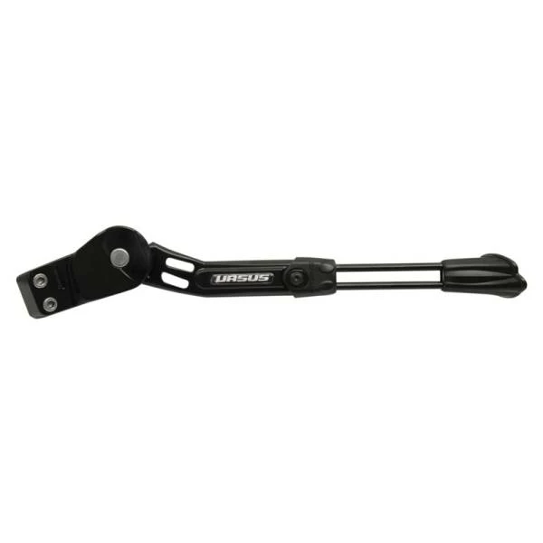 Alu, ondanks de filigrane optiek extreem stabiel, met vlak neigingshoek voor meer stabiliteit van de fiets ook als deze beladen is, met kunststof voet en lengte-indicatie op de achterkant 18 mm gatafstand