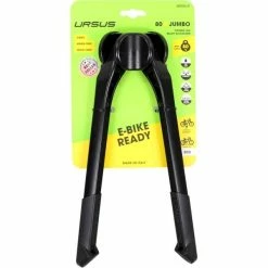 Alu, ondanks de filigrane optiek extreem stabiel, met vlak neigingshoek voor meer stabiliteit van de fiets ook als deze beladen is, met kunststof voet en lengte-indicatie op de achterkant 40 mm gatafstand